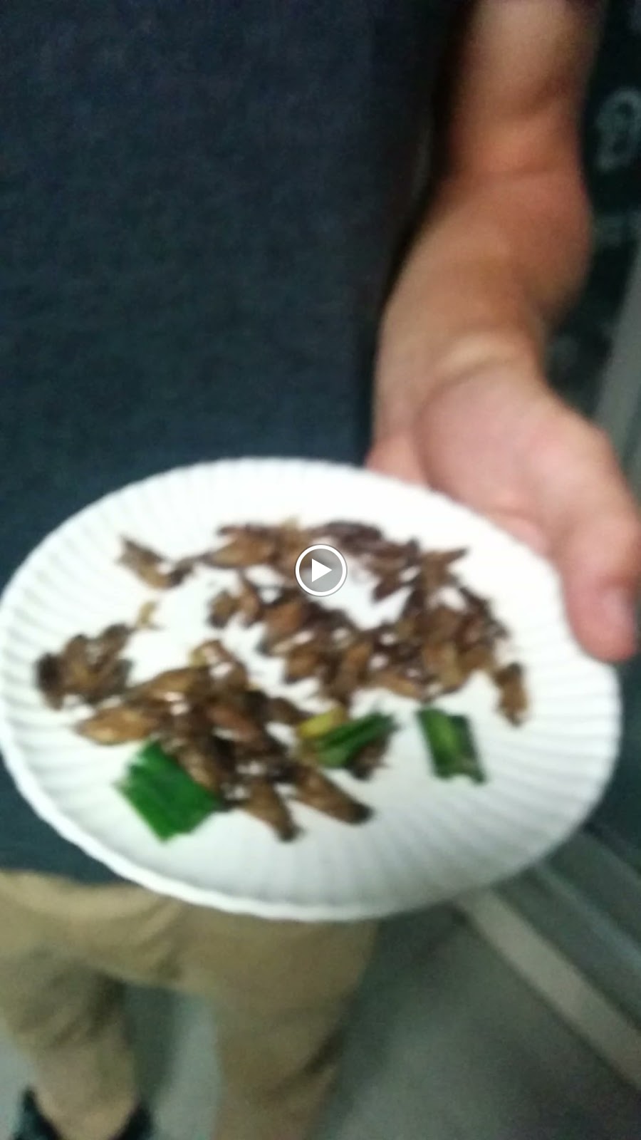 Immediately after getting to the road, Chris spotted a street vendor selling various bugs. He asked to try a fried cricket and got one for free ... Then decided to buy a plate. I have to admit, these were actually quite tasty. A little crunch as you bite into them but after it is really juicy. They are obviously marinated to hell because all you really taste is a nice barbecue flavour.